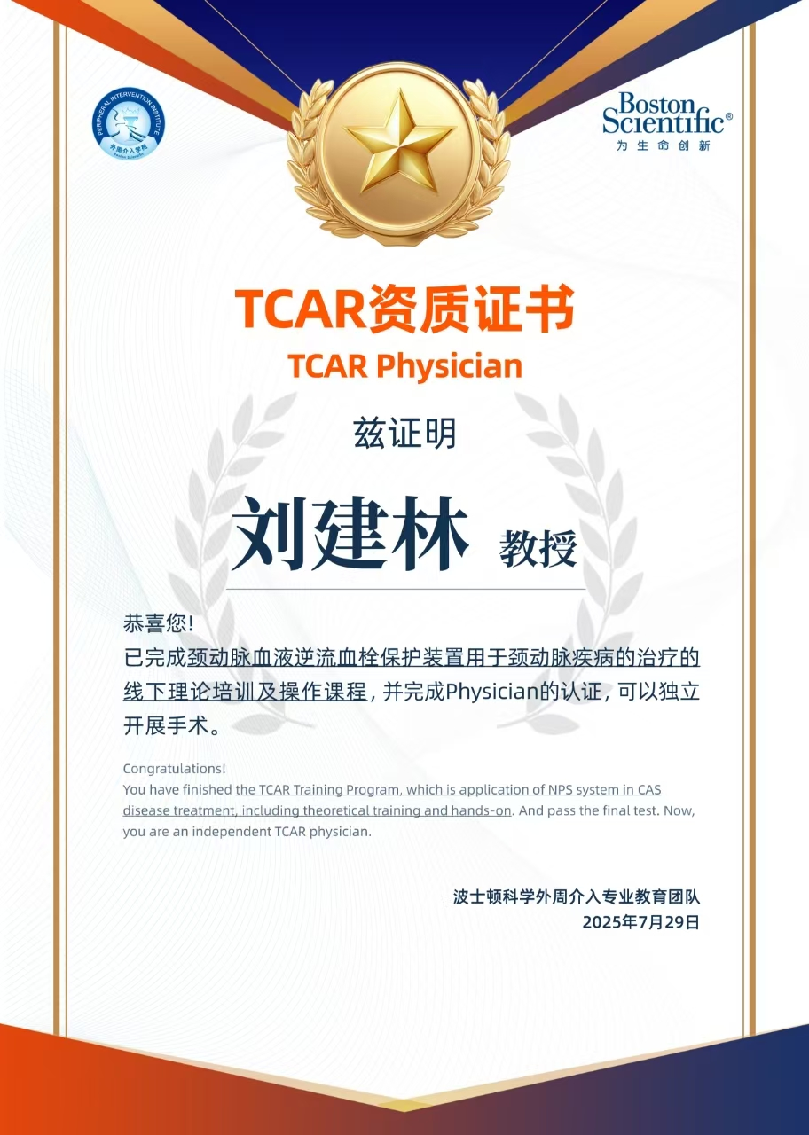 7月29日,交大一附院榆林医院介入血管外科刘建林教授团队在6小时内高效完成3例逆向血流保护下经颈动脉支架成形术(TCAR手术),并成功通过相关机构认证。交大一附院榆林医院介入血管外科在颈动脉狭窄治疗领域掌握了这一国际领先的微创技术,成为全国首批、西北地区除交大一附院外唯一具备常规开展TCAR手术的医疗机构,为高龄、复杂颈动脉狭窄患者提供了更安全的治疗选择。